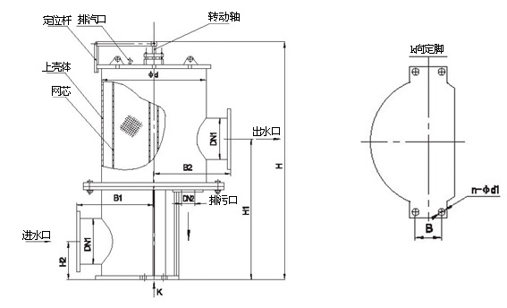 如用戶選型為電動(dòng)濾水器,則當(dāng)雜質(zhì)聚積到一定數(shù)量時(shí),利用冷卻水進(jìn)出水管之間差壓信號(hào)來(lái)開(kāi)啟電動(dòng)排污閥,對(duì)附著在網(wǎng)芯內(nèi)側(cè)壁面上的雜質(zhì)污物反向沖洗,經(jīng)由排污斗、排污管路和排污閥門排入冷卻水出水管中。排污斗步一進(jìn)旋轉(zhuǎn),依次對(duì)準(zhǔn)球面網(wǎng)芯每一分格壁面,進(jìn)行反沖洗。